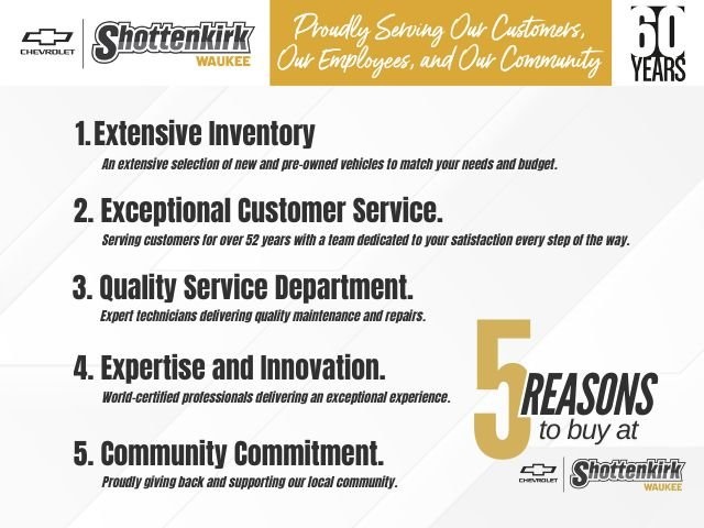 Shottenkirk Chevrolet has been in Waukee now for over 15 years, but as an organization Shottenkirk has been in business over 50 years. We are a family owned dealership and a group of people committed to not only providing you the best buying experience, but providing the very best ownership experience through our excellent customer service, world class facilities, and high quality vehicles. Come see why we have now had 15 years in a row of sales records and see why people enjoy saving more with Shottenkirk Chevrolet in Waukee.
