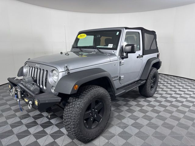 Recent Arrival! Billet Silver Metallic Clearcoat 2015 Jeep Wrangler Sport 2D Sport Utility 3.6L V6 24V VVT 4WD 5-Speed Automatic 17" x 7.5" Aluminum Wheels, Air Conditioning, Auto-Dimming Mirror w/Reading Lamp, Chrome/Leather Wrapped Shift Knob, Connectivity Group, Front 1-Touch Down Power Windows, Leather Wrapped Steering Wheel, Power Convenience Group, Power Heated Mirrors, Power Locks, Quick Order Package 24S, Remote Keyless Entry, Security Alarm, Tire Pressure Monitoring Display, Uconnect Voice Command w/Bluetooth, Vehicle Information Center.