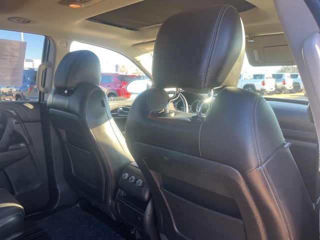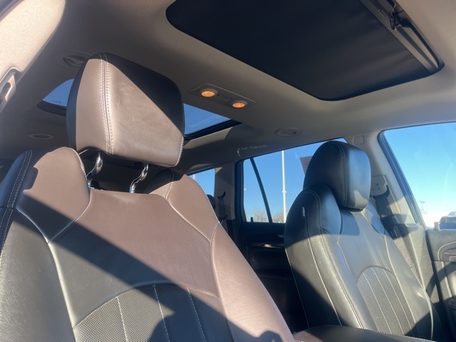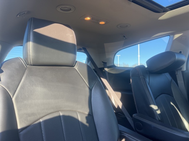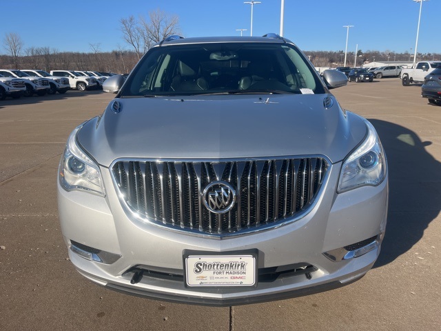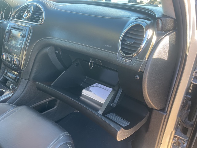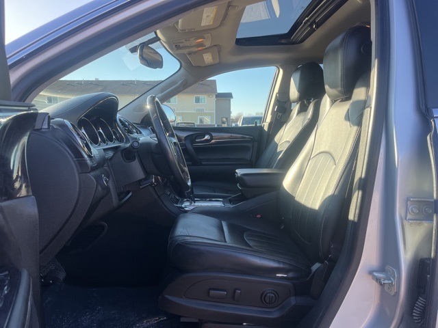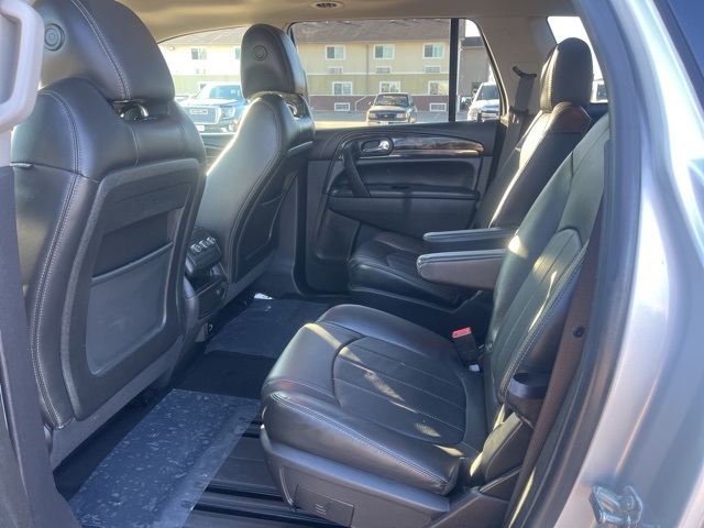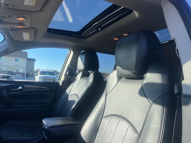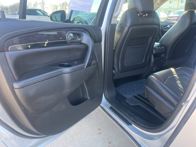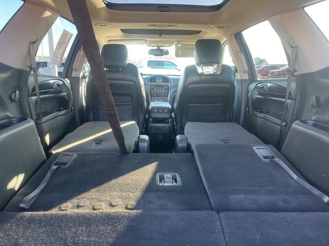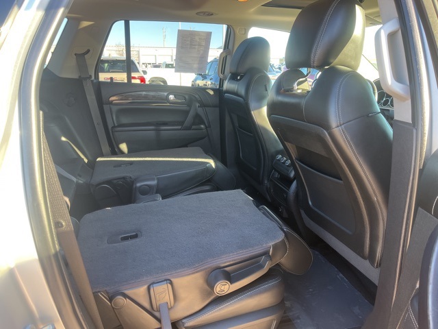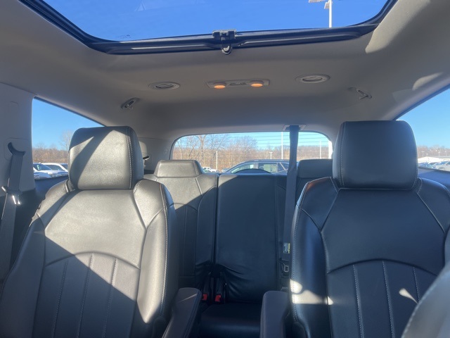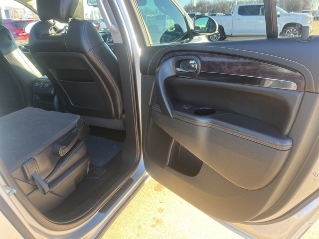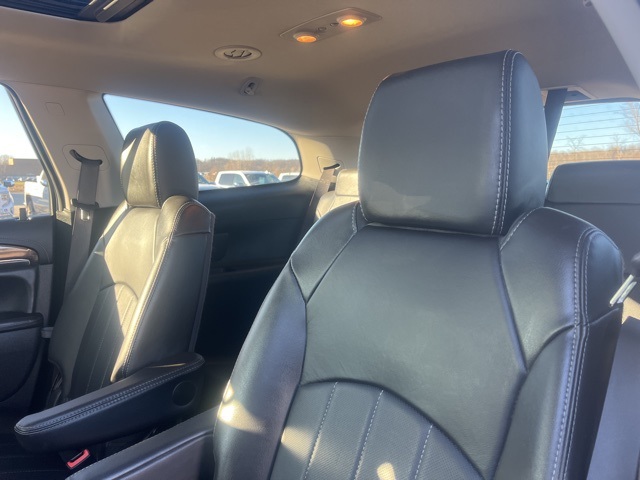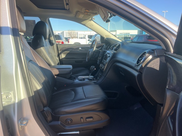 Clean CARFAX. Moonroof, Leather, Heated seats, Heated steering wheel, XM SIRIUS Radio, Local trade, Shottenkirk Certified, Fully Serviced and Detailed, Bluetooth, Rear Back Up Camera, Power driver's seat, Power passenger seat, Blind spot indicator, Apple Car Play, Onstar, Free Carfax history report, Steering Wheel Controls, Alloy Wheels, Leather Interior, Power Sunroof/Moonroof, Enclave Leather Group, 4D Sport Utility, 3.6L V6 SIDI VVT, 6-Speed Automatic Electronic with Overdrive, AWD, Quicksilver Metallic, Ebony w/Ebony Accents w/Perforated Leather-Appointed Seat Trim, 3.16 Axle Ratio, 3rd row seats: split-bench, 4-Wheel Disc Brakes, 6 Speakers, 7-Passenger Seating, ABS brakes, Air Conditioning, Alloy wheels, AM/FM radio: SiriusXM, Auto-dimming Rear-View mirror, Automatic temperature control, Brake assist, Bumpers: body-color, CD player, Compass, Delay-off headlights, Driver door bin, Driver vanity mirror, Dual front impact airbags, Dual front side impact airbags, Electronic stabiliy control, Emergency communication system: OnStar Guidance, Exterior Parking Camera Rear, Four wheel independent suspension, Front anti-roll bar, Front Bucket Seats, Front Center Armrest w/Storage, Front dual zone A/C, Front reading lights, Fully automatic headlights, Garage door transmitter, Heated door mirrors, Heated front seats, Heated steering wheel, High intensity discharge headlights: Bi-Xenon, Illuminated entry, Leather steering wheel, Low tire pressure warning, Memory seat, Occupant sensing airbag, Outside temperature display, Overhead airbag, Panic alarm, Passenger door bin, Passenger vanity mirror, Perforated Leather-Appointed Seat Trim, Power door mirrors, Power driver seat, Power Liftgate, Power passenger seat, Power steering, Power Tilt-Sliding Moonroof, Power windows, Preferred Equipment Group 1SL, Radio data system, Radio: Color Touch AM/FM/CD w/IntelliLink, Rear air conditioning, Rear anti-roll bar, Rear Parking Sensors, Rear reading lights, Rear window defroster, Rear window wiper, Remote keyless entry, Roof rack: rails only, Security system, SiriusXM Satellite Radio, Speed control, Speed-sensing steering, Spoiler, Steering wheel mounted audio controls, Tachometer, Telescoping steering wheel, Tilt steering wheel, Traction control, Trip computer, Turn signal indicator mirrors, Variably intermittent wipers, Voltmeter, Wheels: 19" 10-Spoke Aluminum.