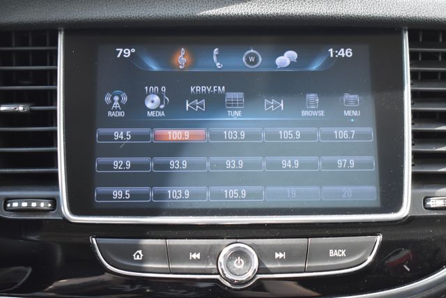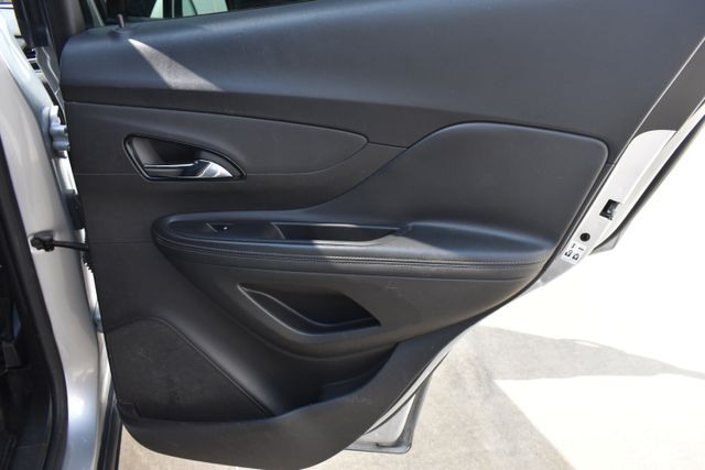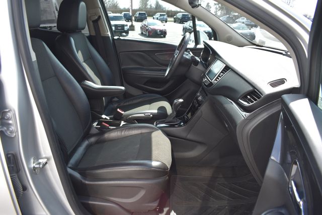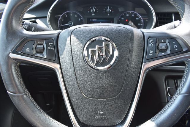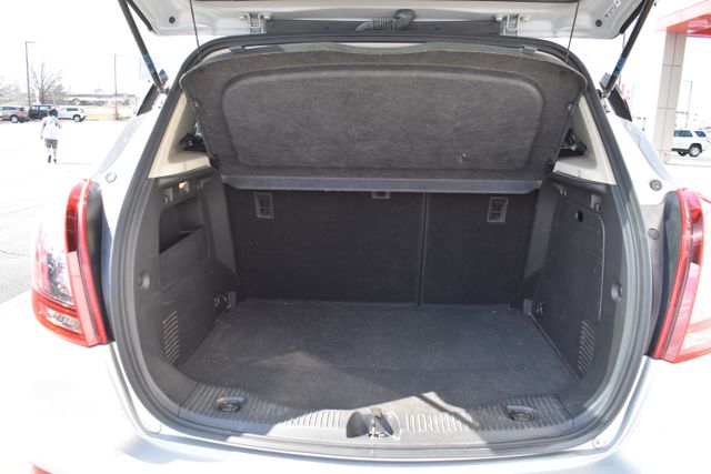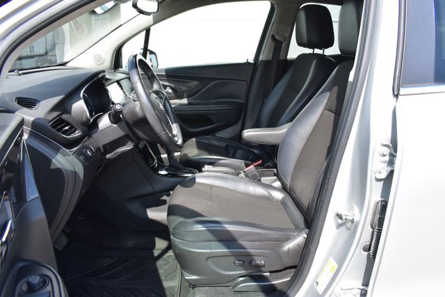 2017 Buick Encore Quicksilver Metallic Preferred ECOTEC 1.4L I4 SMPI DOHC Turbocharged VVT 6-Speed Automatic Electronic with Overdrive FWD Leather, Local Trade, Backup Camera, Encore Preferred, 6-Speed Automatic Electronic with Overdrive, FWD, Quicksilver Metallic, Brandy/Ebony Accents w/Leather-Appointed Seat Trim, 6 Speakers, ABS brakes, Air Conditioning, Alloy wheels, AM/FM radio: SiriusXM, Bumpers: body-color, Cloth w/Leatherette Seat Trim, Compass, Driver door bin, Driver vanity mirror, Driver's Seat Mounted Armrest, Exterior Parking Camera Rear, Front Bucket Seats, Front reading lights, Fully automatic headlights, Heated door mirrors, Illuminated entry, Low tire pressure warning, Outside temperature display, Passenger door bin, Passenger vanity mirror, Power door mirrors, Power driver seat, Power steering, Power windows, Radio data system, Rear window defroster, Rear window wiper, Roof rack: rails only, Security system, Speed control, Split folding rear seat, Spoiler, Steering wheel mounted audio controls, Telescoping steering wheel, Traction control, Turn signal indicator mirrors.