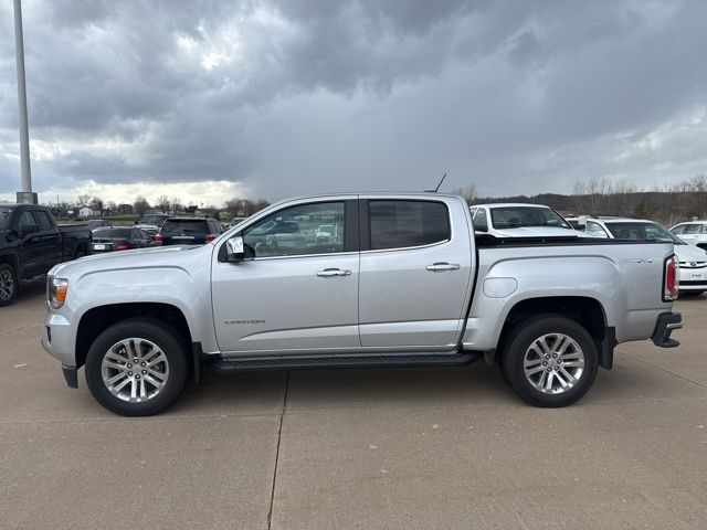 CARFAX One-Owner. Navigation, Leather, Heated seats, XM SIRIUS Radio, Local trade, Shottenkirk Certified, Fully Serviced and Detailed, Bluetooth, Rear Back Up Camera, Power driver's seat, Power passenger seat, Tow package, Onstar, Free Carfax history report, Steering Wheel Controls, Alloy Wheels, Leather Interior, Lane Monitor, Canyon SLT, 4D Crew Cab, V6, 8-Speed Automatic, 4WD, Quicksilver Metallic, Jet Black w/Leather-Appointed Seat Trim, 3.42 Rear Axle Ratio, 4-Way Power Front Passenger Seat Adjuster, 4-Wheel Disc Brakes, 6 Speakers, ABS brakes, Air Conditioning, Alloy wheels, AM/FM radio: SiriusXM, Auto-dimming Rear-View mirror, Automatic temperature control, Black Spray-On Bedliner w/GMC Logo, Bose Premium 7-Speaker Audio System Feature, Bumpers: body-color, Compass, Delay-off headlights, Driver 4-Way Power Seat Adjuster, Driver Alert Package, Driver door bin, Driver vanity mirror, Dual front impact airbags, Dual front side impact airbags, Electronic stabiliy control, Exterior Parking Camera Rear, Forward Collision Alert, Front anti-roll bar, Front Bucket Seats, Front Center Armrest, Front fog lights, Front License Plate Kit, Front reading lights, Front wheel independent suspension, Fully automatic headlights, Heated door mirrors, Heated Driver & Front Passenger Seats, Heated front seats, Illuminated entry, Integrated Trailer Brake Controller, Lane Departure Warning System, Leather-Appointed Seat Trim, Low tire pressure warning, Navigation System, Occupant sensing airbag, Outside temperature display, Overhead airbag, Overhead console, Panic alarm, Passenger door bin, Passenger vanity mirror, Power door mirrors, Power Driver Lumbar Control Seat Adjuster, Power driver seat, Power Passenger Lumbar Control Seat Adjuster, Power passenger seat, Power steering, Power windows, Preferred Equipment Group 4LT, Premium audio system: GMC Infotainment System, Radio data system, Radio: AM/FM Stereo w/8" Color Touch Navigation, Radio: AM/FM Stereo w/8" Color Touch Screen, Rear reading lights, Rear seat center armrest, Rear step bumper, Rear window defroster, Remote keyless entry, Security system, SiriusXM Satellite Radio, Speed control, Speed-sensing steering, Steering wheel mounted audio controls, Tachometer, Telescoping steering wheel, Tilt steering wheel, Tow/Haul Mode, Traction control, Trailering Assist Guideline Hitch Guidance, Trailering Package, Trip computer, Variably intermittent wipers, Wheels: 18" x 8.5" Polished Cast Aluminum.