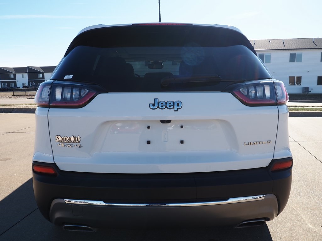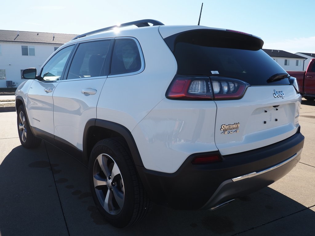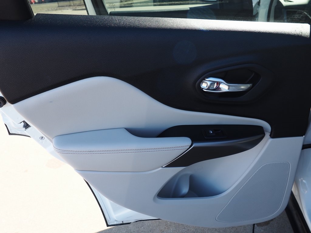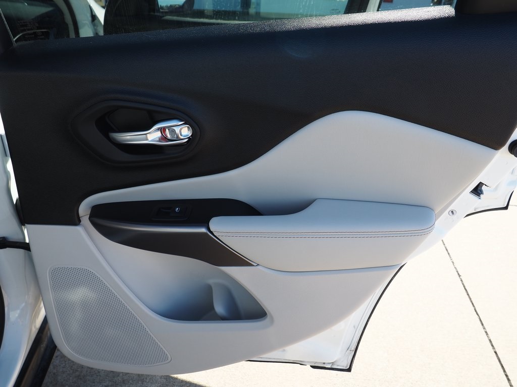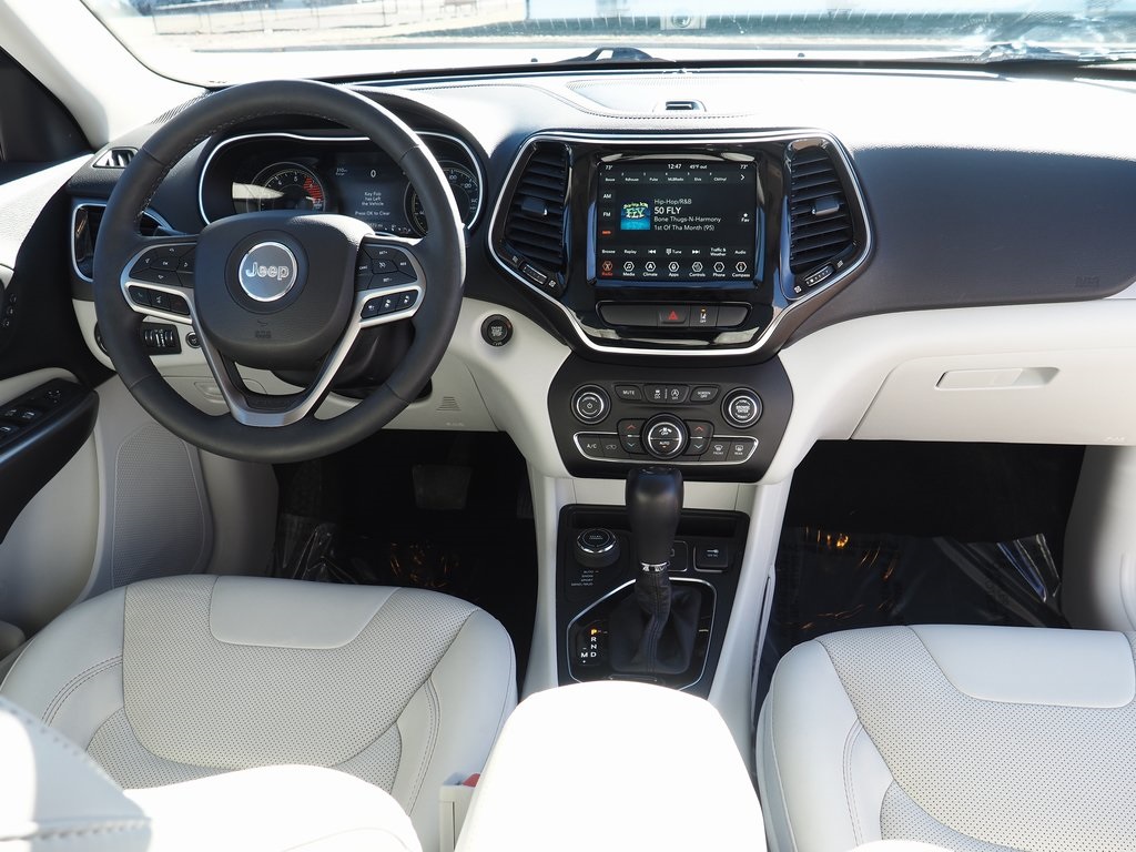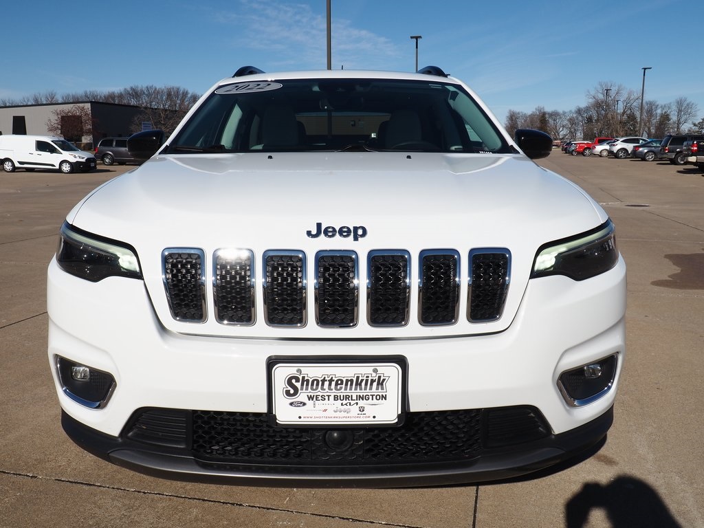 2022 Jeep Cherokee Limited Bright White Clearcoat 4D Sport Utility 2.0L I4 DOHC 9-Speed 948TE Automatic 4WD Limited This vehicle comes well equipped with Quick Order Package 2YG, 10 Speakers, 4-Wheel Disc Brakes, 4G LTE Wi-Fi Hot Spot, 8.4" Touchscreen Display, ABS brakes, Air Conditioning, Alloy wheels, AM/FM radio: SiriusXM, Anti-whiplash front head restraints, Apple CarPlay, Apple CarPlay/Android Auto, Audio memory, Auto High-beam Headlights, Auto-dimming Rear-View mirror, Automatic temperature control, Brake assist, Bumpers: body-color, Compass, Delay-off headlights, Driver door bin, Driver vanity mirror, Dual Bright Exhaust Tips, Dual front impact airbags, Dual front side impact airbags, Electronic Stability Control, Engine Oil Cooler, For Details, Visit DriveUconnect.com, For More Info, Call 800-643-2112, Four wheel independent suspension, Front anti-roll bar, Front Bucket Seats, Front Center Armrest, Front dual zone A/C, Front fog lights, Front License Plate Bracket, Front reading lights, Fully automatic headlights, Garage door transmitter, Google Android Auto, GPS Antenna Input, Heated door mirrors, Heated front seats, Heated steering wheel, Illuminated entry, Knee airbag, Leather Shift Knob, Liquid Titanium Door Trim Appliques, Low tire pressure warning, Memory seat, Normal Duty Suspension, Occupant sensing airbag, Outside temperature display, Overhead airbag, Overhead console, Panic alarm, ParkView Rear Back-Up Camera, Passenger door bin, Passenger vanity mirror, Piano Black Interior Accents, Power door mirrors, Power driver seat, Power Liftgate, Power moonroof, Power passenger seat, Power steering, Power windows, Premium Leather Trimmed Bucket Seats, Radio data system, Radio: Uconnect 4 w/8.4" Display, Rain sensing wipers, Rear anti-roll bar, Rear reading lights, Rear seat center armrest, Rear side impact airbag, Rear window defroster, Rear window wiper, Remote keyless entry, Roof rack: rails only, Security system, SiriusXM Radio Service, SiriusXM Satellite Radio, Speed control, Speed-sensing steering, Split folding rear seat, Spoiler, Steering wheel mounted audio controls, Stop-Start Multiple VSM System, Tachometer, Telescoping steering wheel, Tilt steering wheel, Traction control, Trip computer, Turn signal indicator mirrors, USB Host Flip, Variably intermittent wipers, Voltmeter, and Wheels: 18" x 7.0" Painted Diamond Cut AluminuM.