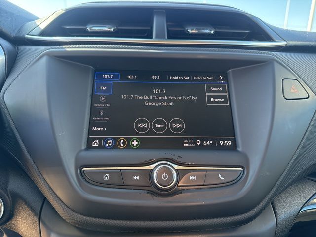 CARFAX One-Owner. Clean CARFAX. XM SIRIUS Radio, Push button start, Local trade, Shottenkirk Certified, Fully Serviced and Detailed, Bluetooth, Rear Back Up Camera, Power driver's seat, Apple Car Play, Onstar, Free Carfax history report, Steering Wheel Controls, Alloy Wheels, Lane Monitor, TrailBlazer LT, 4D Sport Utility, 1.2L Ecotec Turbo DOHC DI w/VVT, CVT, FWD, Sterling Gray Metallic, Jet Black w/Cloth Seat Trim, 2-Way Adjustable Front Head Restraints, 2-Way Power Driver Lumbar Seat Adjuster, 4-Way Manual Front Passenger Seat Adjuster, 4-Wheel Disc Brakes, 5.45 Axle Ratio, 6 Speakers, 6-Speaker Audio System Feature, 7" Diagonal Color Touchscreen, 8-Way Power Driver Seat Adjuster, ABS brakes, Air Conditioning, Alloy wheels, AM/FM radio: SiriusXM, Auto High-beam Headlights, Brake assist, Bumpers: body-color, Cloth Seat Trim, Compass, Delay-off headlights, Driver door bin, Driver vanity mirror, Dual front impact airbags, Dual front side impact airbags, Electronic stabiliy control, Emergency communication system: OnStar and Chevrolet connected services capable, Exterior Parking Camera Rear, Flat-Folding Front Passenger Seatback, Front anti-roll bar, Front Bucket Seats, Front Center Armrest, Front fog lights, Front License Plate Bracket, Front reading lights, Front wheel independent suspension, Fully automatic headlights, Heated door mirrors, Heated Driver & Front Passenger Seats, Heated front seats, Illuminated entry, Knee airbag, Low tire pressure warning, Occupant sensing airbag, Overhead airbag, Overhead console, Panic alarm, Passenger door bin, Passenger vanity mirror, Power door mirrors, Power driver seat, Power steering, Power windows, Preferred Equipment Group 1LT, Radio data system, Radio: Chevrolet Infotainment 3 System, Rear side impact airbag, Rear window defroster, Rear window wiper, Remote keyless entry, Ride & Handling Suspension, Security system, SiriusXM Radio, Speed control, Split folding rear seat, Spoiler, Steering wheel mounted audio controls, Tachometer, Telescoping steering wheel, Tilt steering wheel, Traction control, Trip computer, Variably intermittent wipers, Wheels: 17" High Gloss Black Machined Aluminum, Wireless Apple CarPlay/Android Auto.