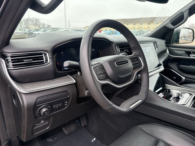 CARFAX One-Owner. Navigation, Leather, Heated and cooled seats, Heated seats, Heated steering wheel, XM SIRIUS Radio, Shottenkirk Certified, Fully Serviced and Detailed, Bluetooth, Rear Back Up Camera, Power driver's seat, Power passenger seat, Blind spot indicator, Apple Car Play, Free Carfax history report, Alloy Wheels, Leather Interior, Lane Monitor, Wagoneer L Series II, 4D Sport Utility, 3.0L I6, 8-Speed Automatic, 4WD, Diamond Black Crystal Pearlcoat, Global Black w/Leather Trimmed Bucket Seats, 10 Speakers, 3.55 Rear Axle Ratio, 3rd row seats: bench, 4-Wheel Disc Brakes, ABS brakes, Adjustable pedals, Air Conditioning, Alloy wheels, AM/FM radio: SiriusXM with 360L, Anti-whiplash front head restraints, Audio memory, Auto-dimming door mirrors, Auto-dimming Rear-View mirror, Auto-leveling suspension, Automatic temperature control, Brake assist, Bumpers: body-color, Compass, Delay-off headlights, Driver door bin, Driver vanity mirror, Driver's Seat Mounted Armrest, Dual front impact airbags, Dual front side impact airbags, Electronic stabiliy control, Emergency communication system: Automatic SOS Call, Exterior Parking Camera Rear, Four wheel independent suspension, Front anti-roll bar, Front Bucket Seats, Front Center Armrest w/Storage, Front dual zone A/C, Front fog lights, Front reading lights, Fully automatic headlights, Garage door transmitter, Genuine wood console insert, Genuine wood dashboard insert, Genuine wood door panel insert, Heated door mirrors, Heated front seats, Heated steering wheel, Illuminated entry, Knee airbag, Leather Trimmed Bucket Seats, Low tire pressure warning, Navigation System, Normal Duty Suspension, Occupant sensing airbag, Outside temperature display, Overhead airbag, Overhead console, Panic alarm, Passenger door bin, Passenger seat mounted armrest, Passenger vanity mirror, Pedal memory, Power adjustable front head restraints, Power door mirrors, Power driver seat, Power Liftgate, Power passenger seat, Power steering, Power windows, Quick Order Package 25J, Radio data system, Radio: Uconnect 5 Nav w/10.1" Display, Rain sensing wipers, Rear air conditioning, Rear anti-roll bar, Rear reading lights, Rear seat center armrest, Rear window defroster, Rear window wiper, Reclining 3rd row seat, Remote keyless entry, Security system, Speed control, Speed-sensing steering, Speed-Sensitive Wipers, Split folding rear seat, Steering wheel memory, Steering wheel mounted audio controls, Tachometer, Telescoping steering wheel, Tilt steering wheel, Traction control, Trip computer, Turn signal indicator mirrors, Variably intermittent wipers, Ventilated front seats, Voltmeter, Wheels: 20" x 9.0" Premium 2 Aluminum.