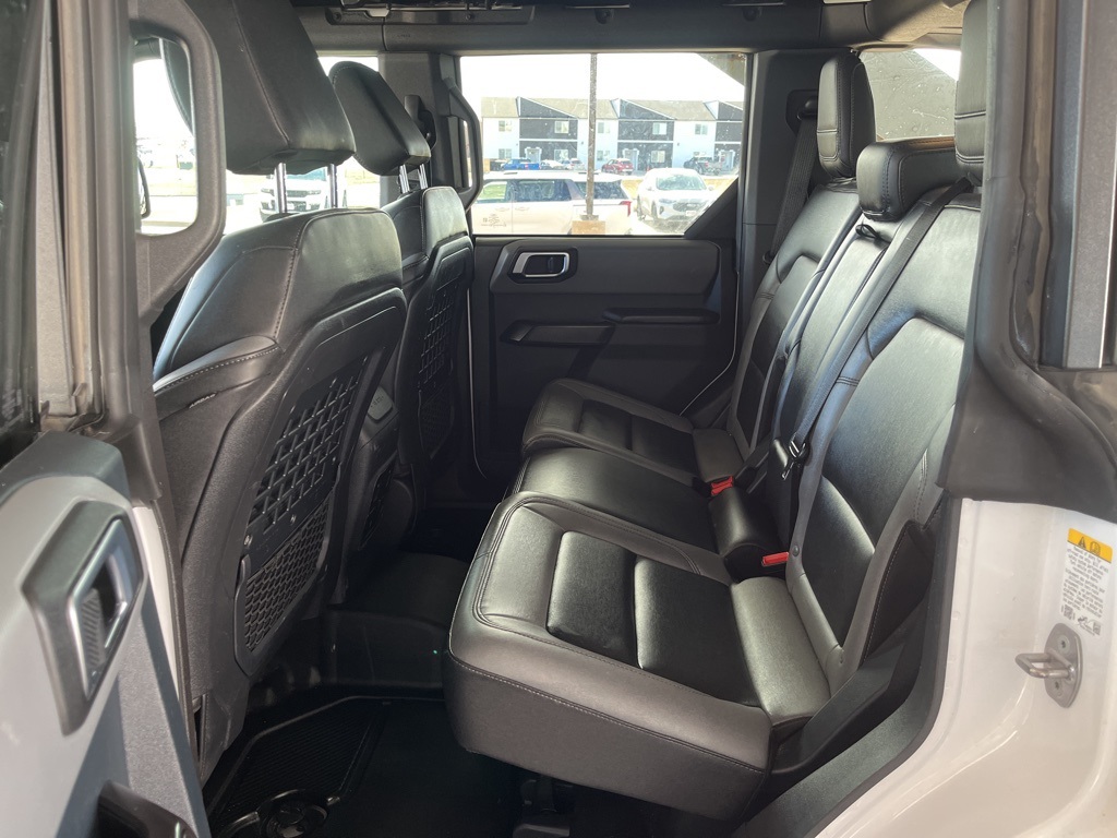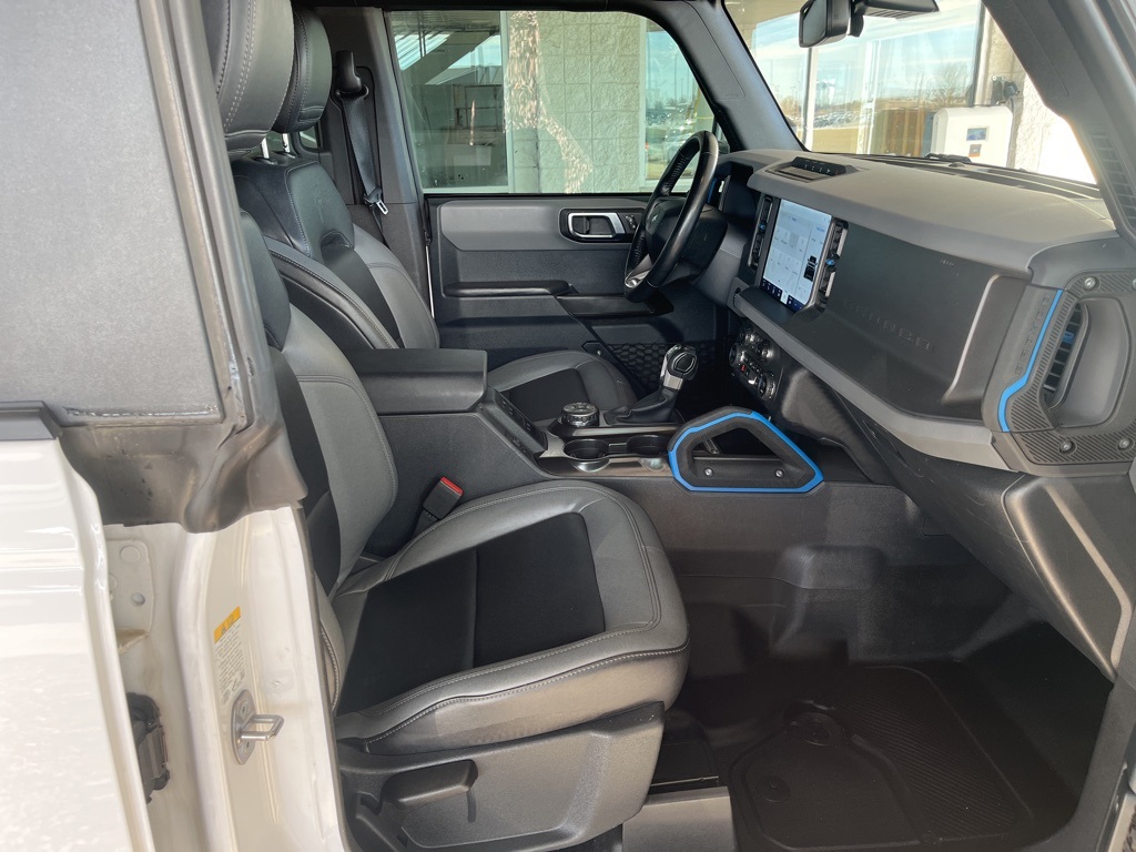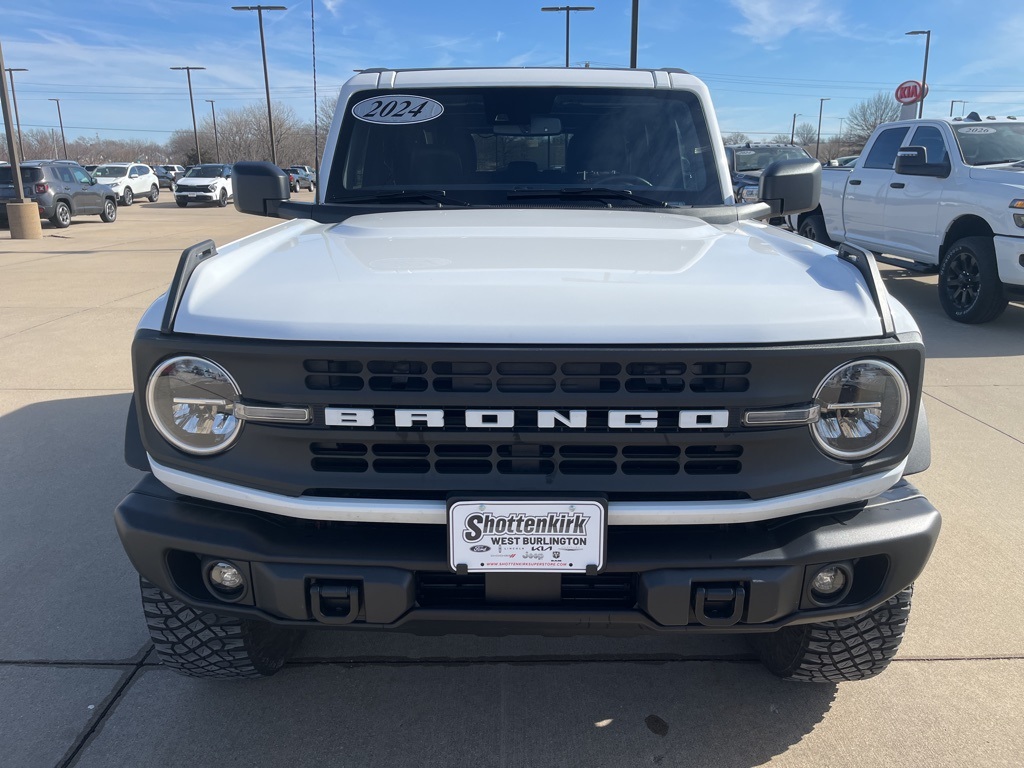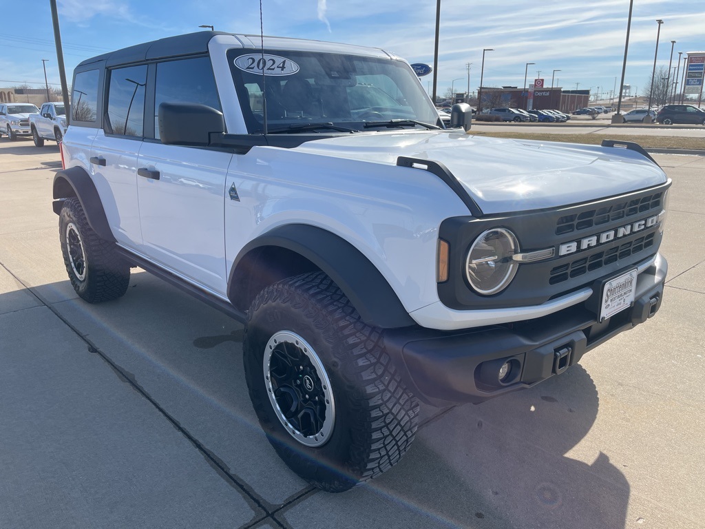 2024 Ford Bronco Black Diamond Oxford White 4D Sport Utility 2.3L EcoBoost I-4 10-Speed Automatic 4WD Black Diamond This vehicle comes well equipped with Sasquatch Package (4.7 Final Drive Ratio, High Clearance Fender Flares, High Clearance Suspension, Position-Sensitive Bilstein Shock Absorbers, and Wheels: 17" Black High Gloss-Painted Aluminum (765)) Sasquatch Package (4.7 Final Drive Ratio, High Clearance Fender Flares, High Clearance Suspension, Position-Sensitive Bilstein Shock Absorbers, and Wheels: 17" Black High Gloss-Painted Aluminum (765)), 4-Wheel Disc Brakes, 7 Speakers, ABS brakes, Air Conditioning, Alloy wheels, AM/FM radio: SiriusXM with 360L, AM/FM Stereo, Auto High-beam Headlights, Brake assist, Compass, Delay-off headlights, Driver door bin, Driver vanity mirror, Dual front impact airbags, Dual front side impact airbags, Electronic Stability Control, Emergency communication system: 911 Assist, Exterior Parking Camera Rear, Front anti-roll bar, Front Bucket Seats, Front Center Armrest, Front reading lights, Front wheel independent suspension, Fully automatic headlights, Heated door mirrors, Illuminated entry, Integrated roll-over protection, Leather Shift Knob, Low tire pressure warning, Marine Grade Vinyl Bucket Seats, Occupant sensing airbag, Outside temperature display, Overhead airbag, Overhead console, Panic alarm, Passenger door bin, Passenger vanity mirror, Power door mirrors, Power steering, Power windows, Radio data system, Remote keyless entry, Security system, SiriusXM Radio w/360L, Speed control, Split folding rear seat, Steering wheel mounted audio controls, SYNC 4, Tachometer, Telescoping steering wheel, Tilt steering wheel, Traction control, Trip computer, Variably intermittent wipers, and Wheels: 17" Black High Gloss-Painted Aluminum.