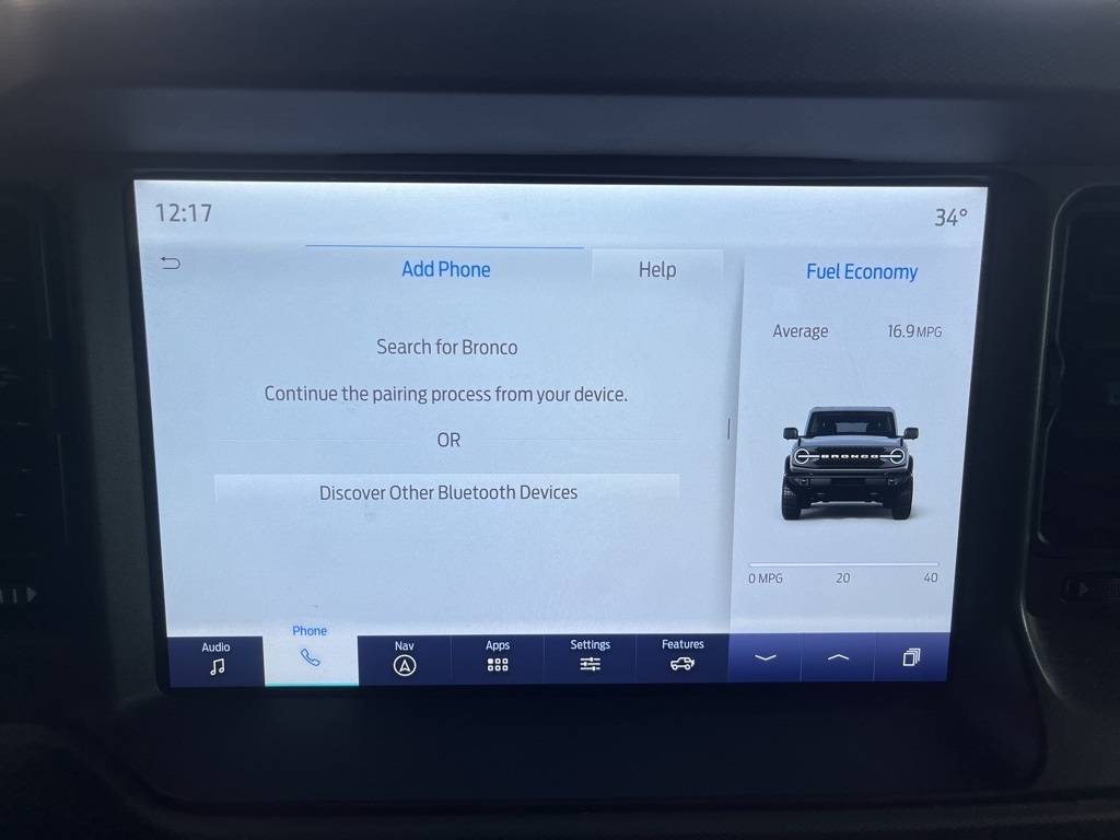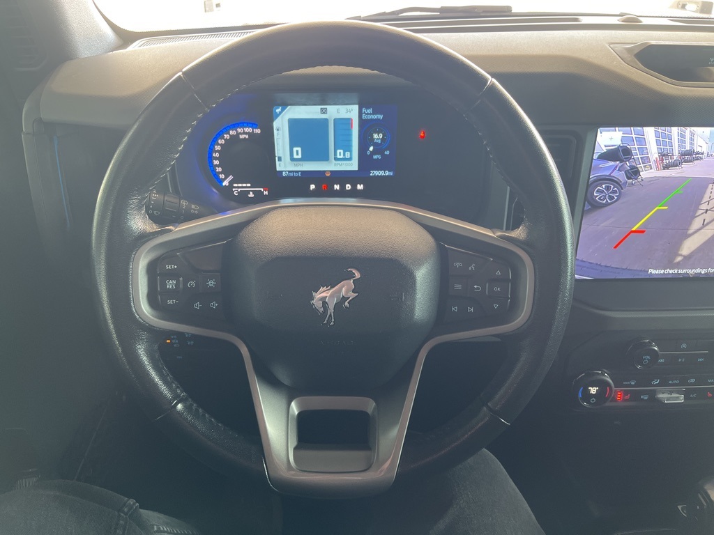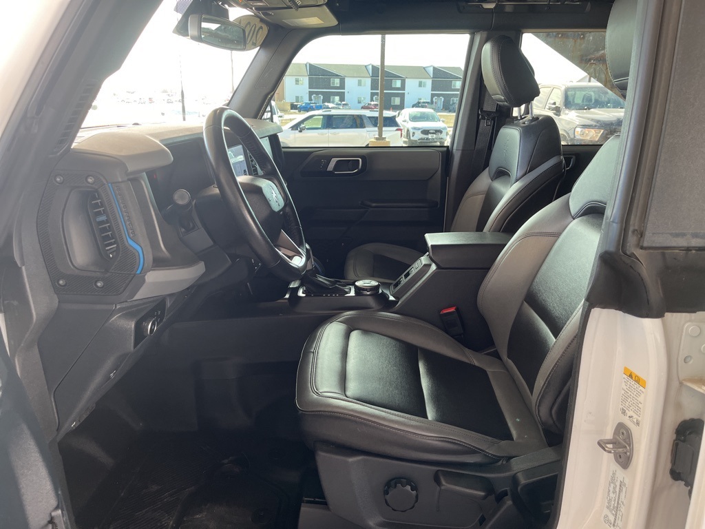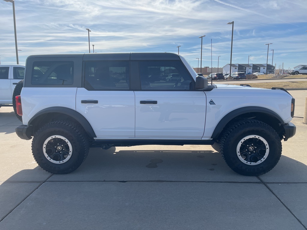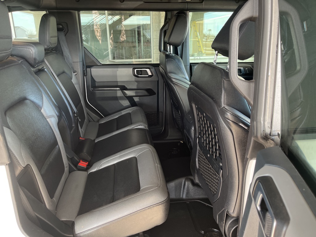 2024 Ford Bronco Black Diamond Oxford White 4D Sport Utility 2.3L EcoBoost I-4 10-Speed Automatic 4WD Black Diamond This vehicle comes well equipped with Sasquatch Package (4.7 Final Drive Ratio, High Clearance Fender Flares, High Clearance Suspension, Position-Sensitive Bilstein Shock Absorbers, and Wheels: 17" Black High Gloss-Painted Aluminum (765)) Sasquatch Package (4.7 Final Drive Ratio, High Clearance Fender Flares, High Clearance Suspension, Position-Sensitive Bilstein Shock Absorbers, and Wheels: 17" Black High Gloss-Painted Aluminum (765)), 4-Wheel Disc Brakes, 7 Speakers, ABS brakes, Air Conditioning, Alloy wheels, AM/FM radio: SiriusXM with 360L, AM/FM Stereo, Auto High-beam Headlights, Brake assist, Compass, Delay-off headlights, Driver door bin, Driver vanity mirror, Dual front impact airbags, Dual front side impact airbags, Electronic Stability Control, Emergency communication system: 911 Assist, Exterior Parking Camera Rear, Front anti-roll bar, Front Bucket Seats, Front Center Armrest, Front reading lights, Front wheel independent suspension, Fully automatic headlights, Heated door mirrors, Illuminated entry, Integrated roll-over protection, Leather Shift Knob, Low tire pressure warning, Marine Grade Vinyl Bucket Seats, Occupant sensing airbag, Outside temperature display, Overhead airbag, Overhead console, Panic alarm, Passenger door bin, Passenger vanity mirror, Power door mirrors, Power steering, Power windows, Radio data system, Remote keyless entry, Security system, SiriusXM Radio w/360L, Speed control, Split folding rear seat, Steering wheel mounted audio controls, SYNC 4, Tachometer, Telescoping steering wheel, Tilt steering wheel, Traction control, Trip computer, Variably intermittent wipers, and Wheels: 17" Black High Gloss-Painted Aluminum.
