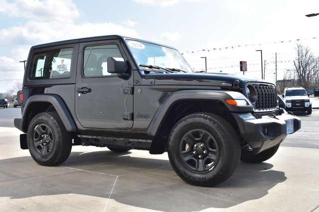 2024 Jeep Wrangler Black Clearcoat Sport 3.6L V6 24V VVT 8-Speed Automatic 4WD Clean Carfax, One Owner, Local Trade, Backup Camera, Wrangler Sport, 8-Speed Automatic, 4WD, Black Clearcoat, Black Cloth, 8 Speakers, ABS brakes, AM/FM radio: SiriusXM with 360L, Cloth Low-Back Bucket Seats, Compass, Driver door bin, Driver vanity mirror, Front Bucket Seats, Front Center Armrest w/Storage, Low tire pressure warning, Outside temperature display, ParkView Rear Back-Up Camera, Passenger door bin, Passenger vanity mirror, Power steering, Radio data system, Rear Window Defroster, Rear Window Wiper/Washer, Speed control, Steering wheel mounted audio controls, Telescoping steering wheel, Tilt steering wheel, Traction control.