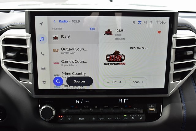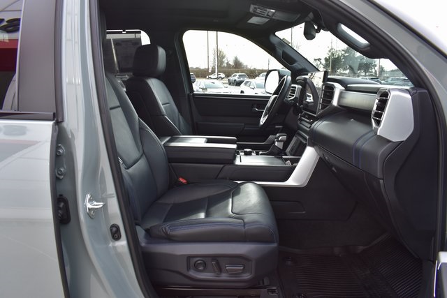 2025 Toyota Tundra Hybrid Lunar Platinum 3.4L V6 10-Speed Automatic 4WD Fixed Running Boards, Towing/Camper Pkg, Clean Carfax, One Owner, Navigation, Sunroof/Moonroof, Leather, Backup Camera, Tundra Hybrid Platinum, 10-Speed Automatic, 4WD, Lunar, Black w/Premium Leather Seat Trim, 12 Speakers, 4-Wheel Disc Brakes, ABS brakes, Air Conditioning, Alloy wheels, AM/FM radio: SiriusXM, Auto-dimming door mirrors, Automatic temperature control, Bumpers: body-color, Driver door bin, Driver vanity mirror, Exterior Parking Camera Rear, Front Bucket Seats, Front Center Armrest, Front dual zone A/C, Front reading lights, Fully automatic headlights, Heated & Ventilated Front Bucket Seats, Heated door mirrors, Heated front seats, Heated rear seats, Heated steering wheel, Illuminated entry, Leather steering wheel, Low tire pressure warning, Memory seat, Navigation System, Occupant sensing airbag, Outside temperature display, Passenger door bin, Passenger vanity mirror, Power door mirrors, Power driver seat, Power moonroof, Power passenger seat, Power steering, Power windows, Premium Leather Seat Trim, Radio data system, Rain sensing wipers, Rear seat center armrest, Rear step bumper, Rear window defroster, Remote keyless entry, Security system, Speed control, Split folding rear seat, Steering wheel memory, Steering wheel mounted audio controls, Telescoping steering wheel, Tilt steering wheel, Traction control, Trip computer, Turn signal indicator mirrors, Ventilated front seats, Ventilated rear seats.